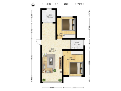 房屋戶型: 2 室2廳 -- 廚1衛(wèi)
