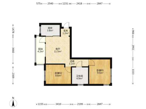 房屋戶型: 2 室1廳 -- 廚1衛(wèi)