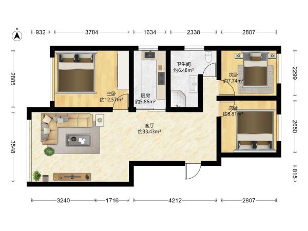 房屋戶(hù)型: 3 室2廳 1 廚1衛(wèi)