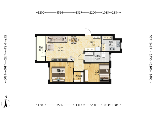 房屋戶型: 2 室2廳 2 廚2衛(wèi)