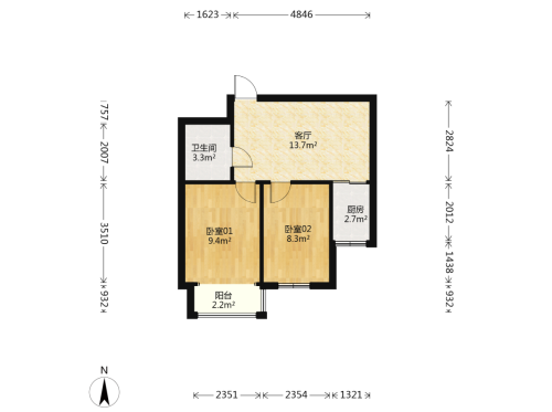 房屋戶型: 2 室1廳 1 廚1衛(wèi)