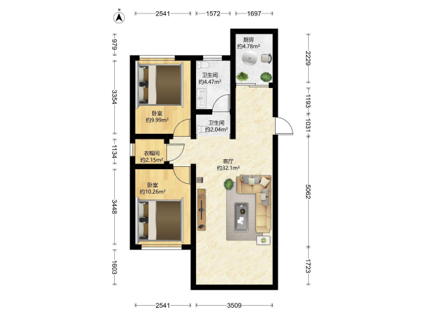 房屋戶型: 2 室2廳 1 廚1衛(wèi)