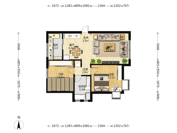 房屋戶型: 2 室2廳 1 廚1衛(wèi)