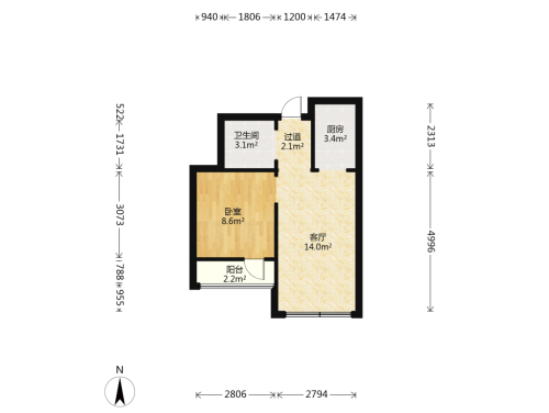 房屋戶型: 1 室1廳 1 廚1衛(wèi)