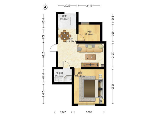 房屋戶型: 2 室1廳 1 廚1衛(wèi)
