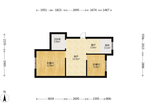 房屋戶型: 2 室1廳 1 廚1衛(wèi)