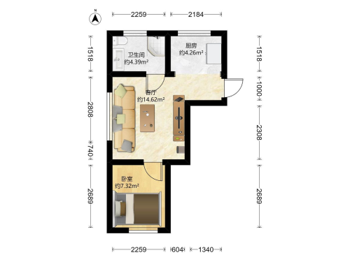 房屋戶型: 1 室1廳 1 廚1衛(wèi)