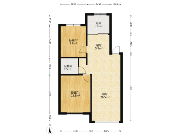 房屋戶型: 2 室2廳 1 廚1衛(wèi)