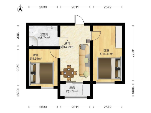 房屋戶型: 2 室1廳 1 廚1衛(wèi)
