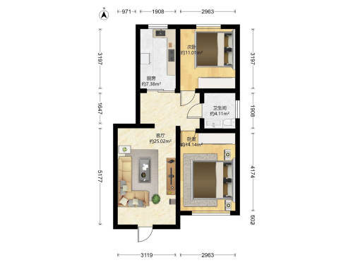 房屋戶型: 2 室2廳 1 廚1衛(wèi)