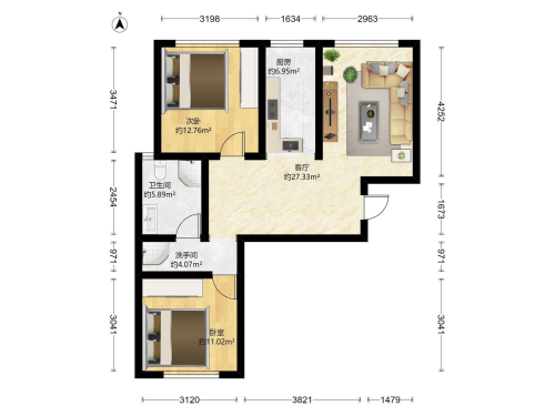 房屋戶型: 2 室2廳 1 廚1衛(wèi)