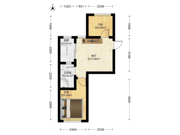 房屋戶型: 2 室1廳 2 廚2衛(wèi)