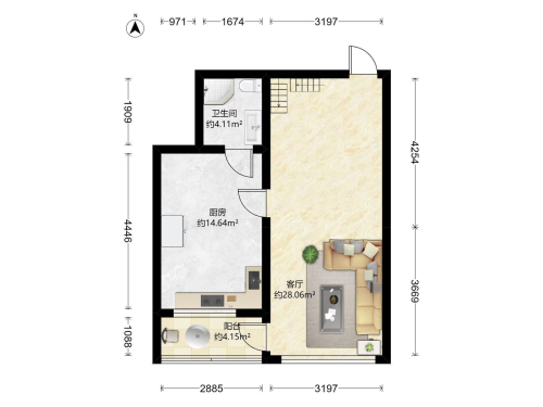 房屋戶型: 3 室2廳 1 廚1衛(wèi)