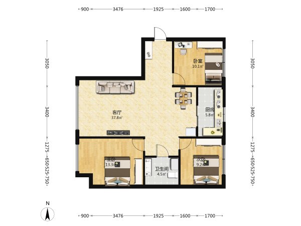 房屋戶型: 3 室2廳 1 廚1衛(wèi)