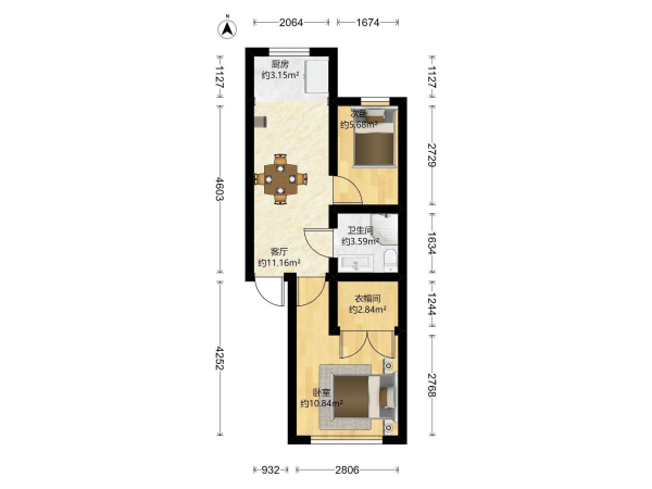 房屋戶型: 2 室1廳 1 廚1衛(wèi)