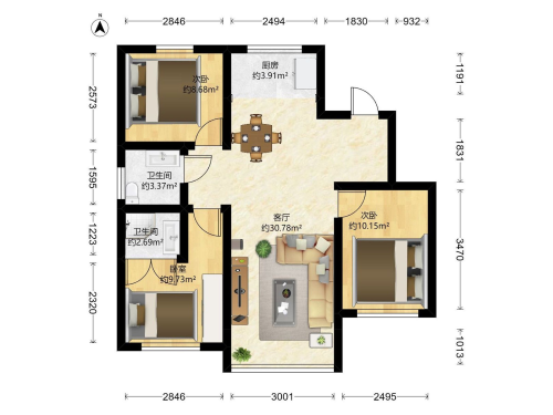 房屋戶型: 3 室2廳 1 廚2衛(wèi)