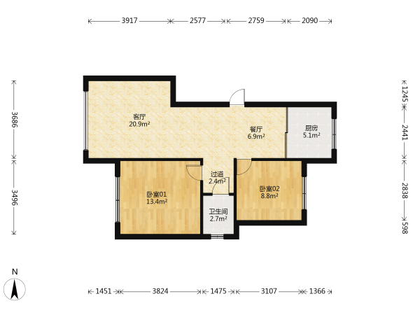 房屋戶型: 2 室2廳 1 廚1衛(wèi)