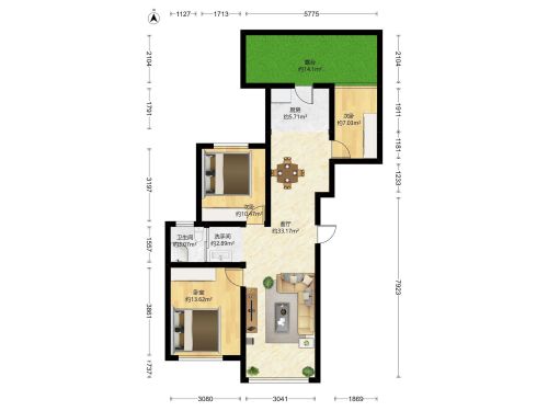 房屋戶型: 3 室1廳 1 廚1衛(wèi)