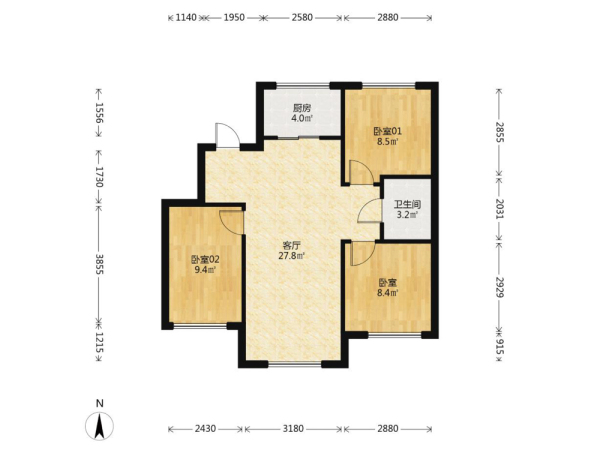 房屋戶型: 3 室2廳 1 廚1衛(wèi)