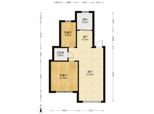 房屋戶型: 2 室1廳 1 廚1衛(wèi)