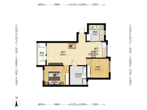 房屋戶型: 2 室2廳 1 廚1衛(wèi)