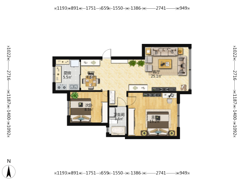 房屋戶型: 2 室2廳 1 廚1衛(wèi)