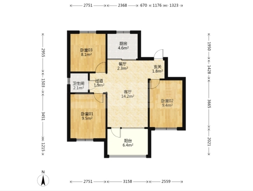房屋戶型: 2 室1廳 1 廚1衛(wèi)