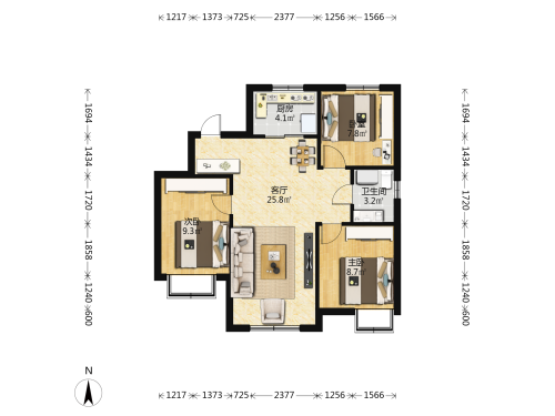 房屋戶型: 3 室2廳 1 廚1衛(wèi)