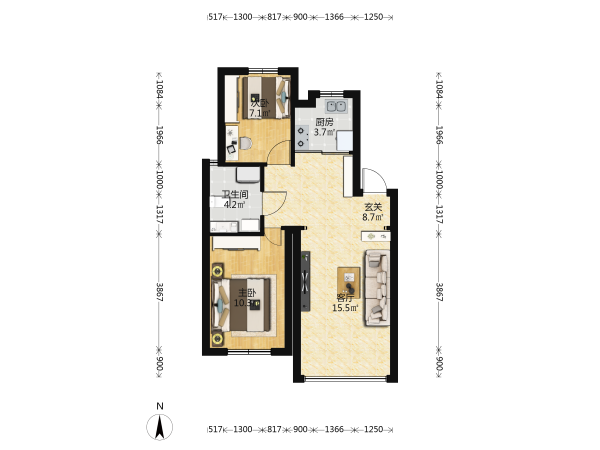 房屋戶型: 2 室2廳 1 廚1衛(wèi)