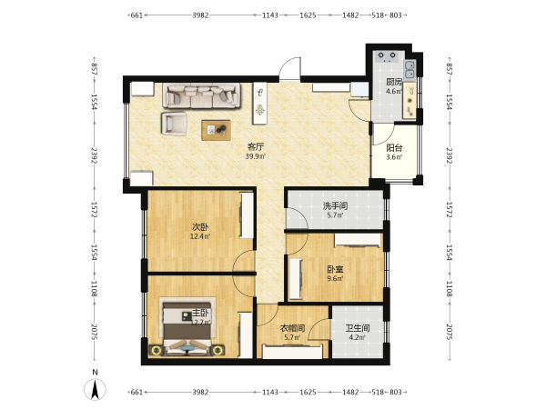 房屋戶型: 3 室2廳 1 廚2衛(wèi)