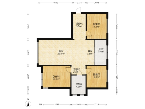 房屋戶型: 3 室2廳 1 廚1衛(wèi)