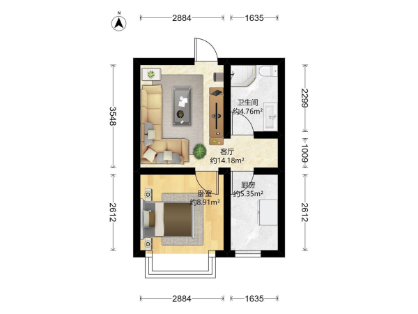 房屋戶型: 2 室1廳 1 廚1衛(wèi)
